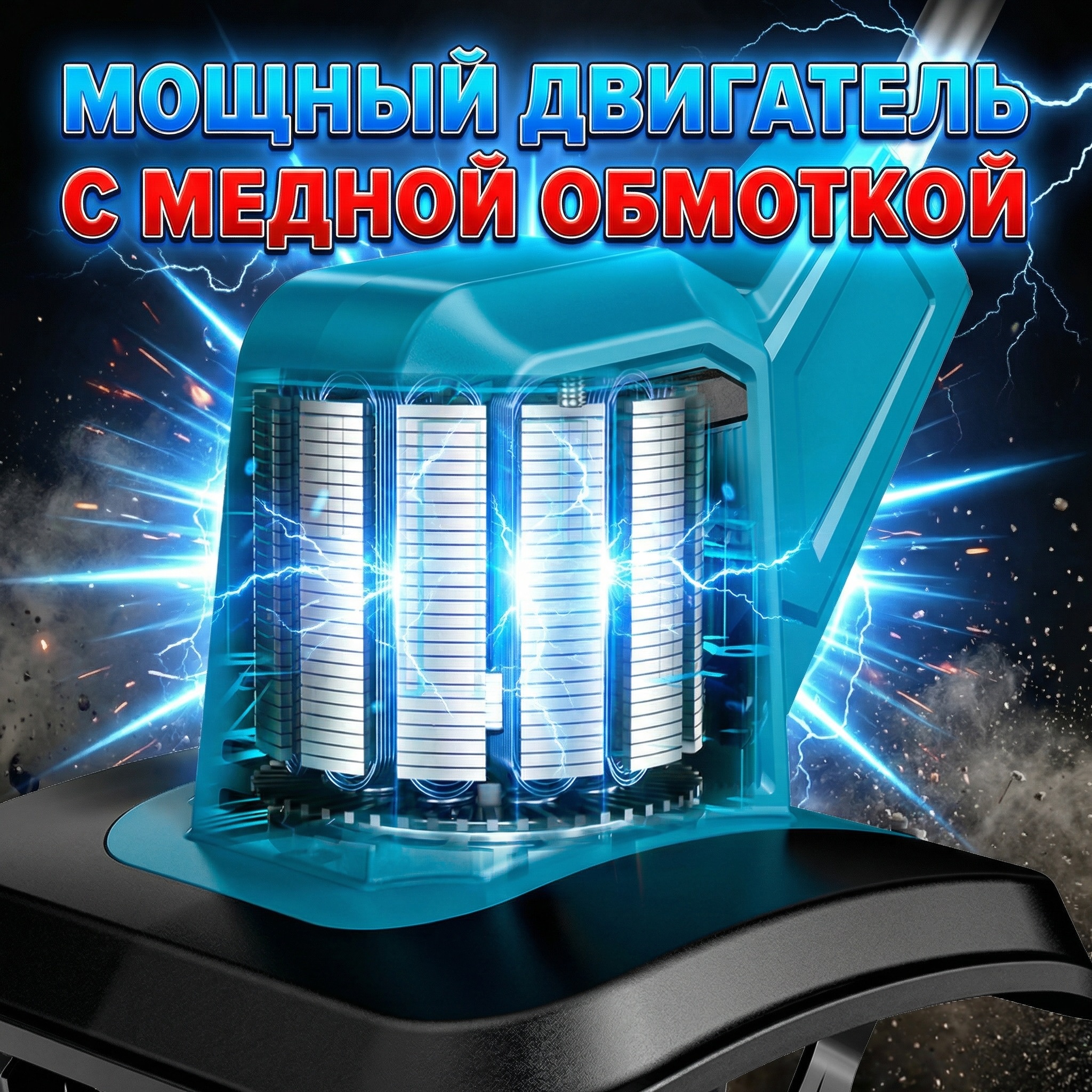 Усиленная медная обмотка обеспечивает стабильную мощность без просадок даже при высокой нагрузке.