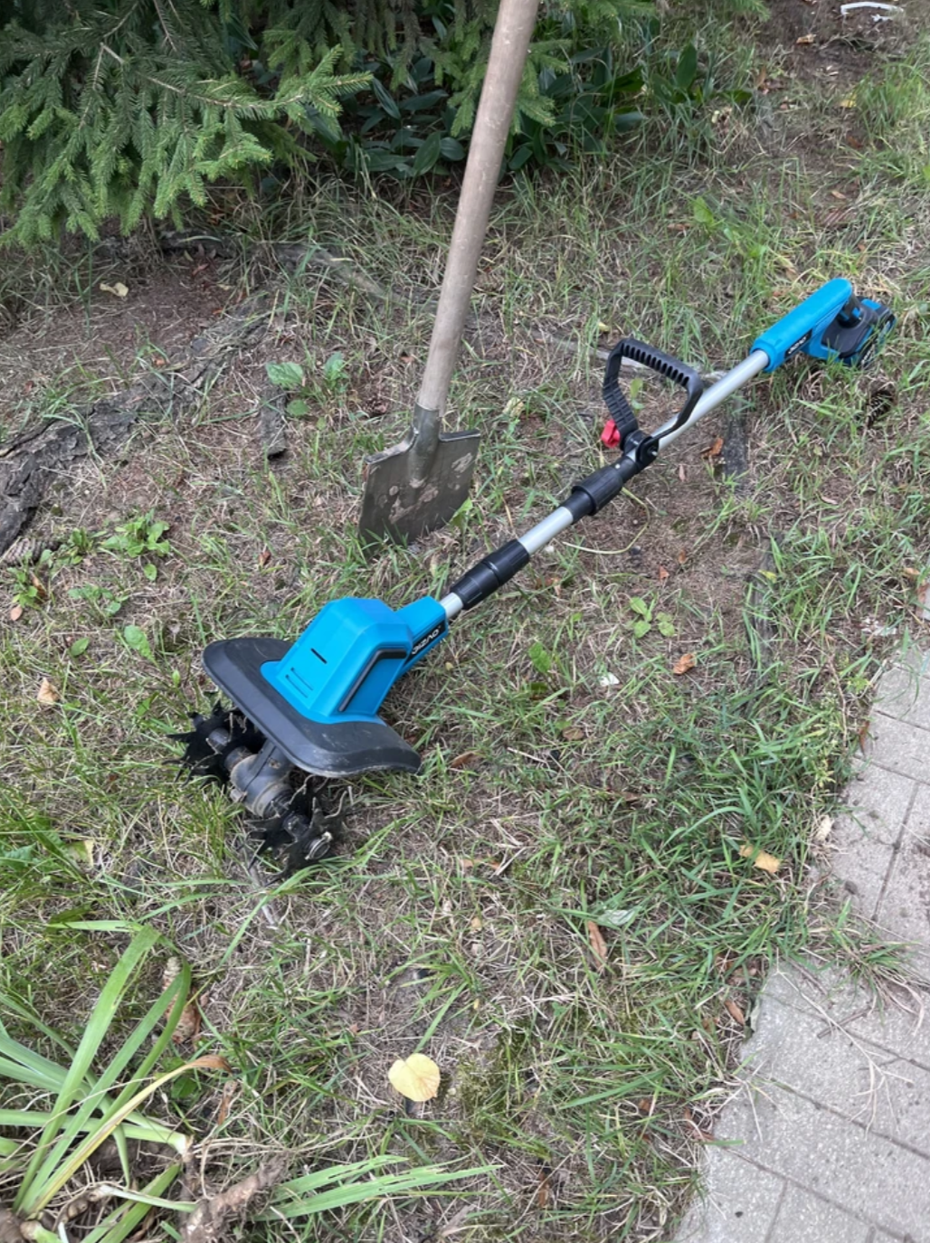 Брал культиватор для дачи, сразу приступил к работе всё отлично справляется с почвой. Лёгкий, удобный, мощный. Работает долго без подзарядки. Очень доволен покупкой.